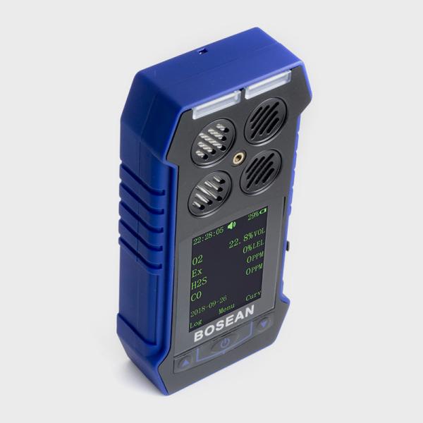 Portable gas detector with a large LCD. It can monitor CO, H2S, O2 and combustible gas simultaneously. The instrument features two instant alarms with audio/visual and vibratory indicators, rechargeable battery, and simple use.